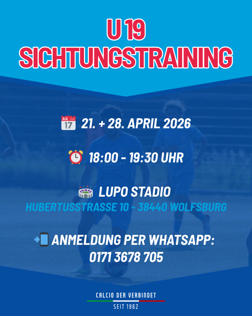 Lupo Martini lädt zu zwei Sichtungstrainings unseres Landesligateams der U19 für die Saison 2026/27 Talente aus der Region ein:
