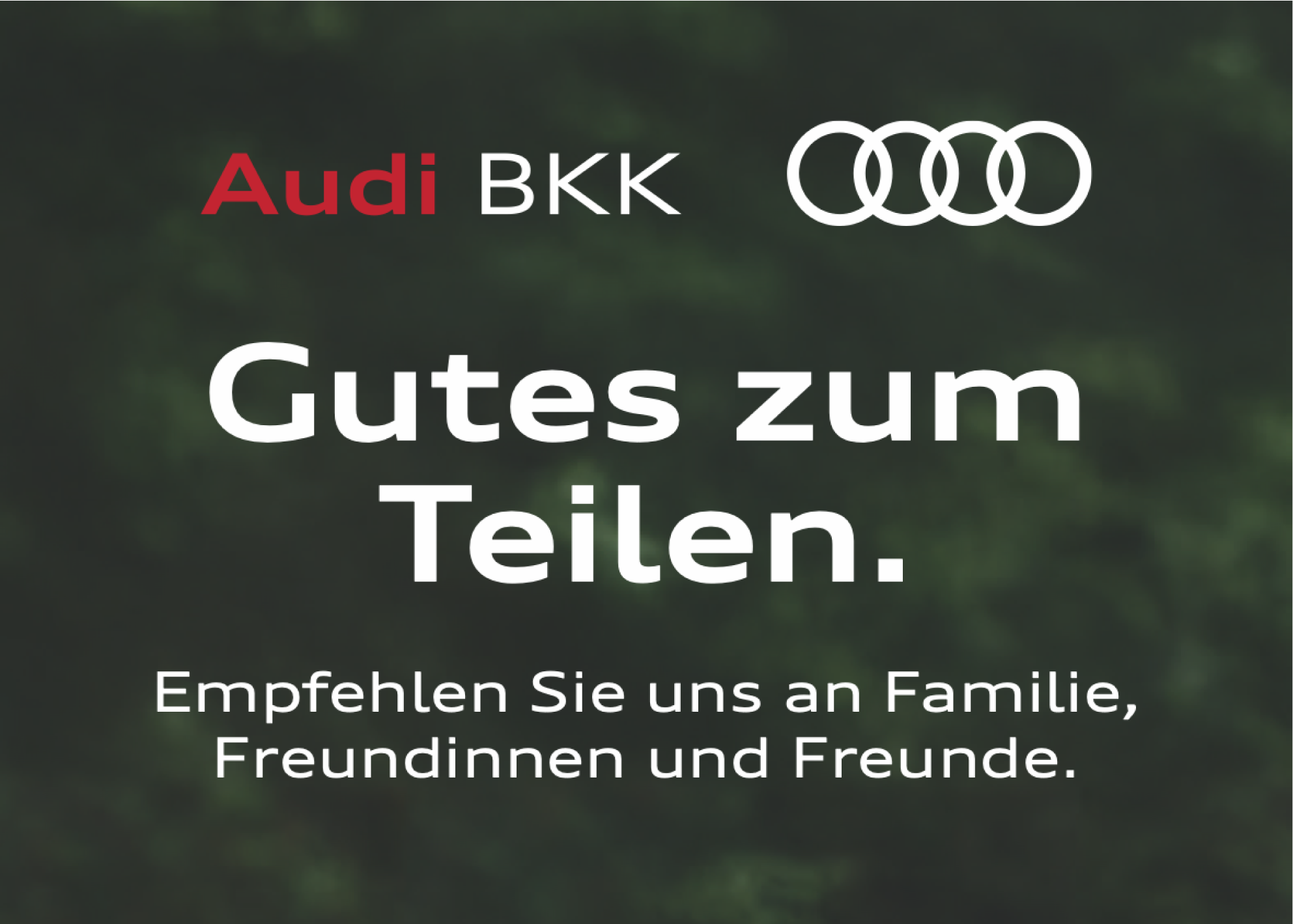 Du bist bereits bei der Audi BKK versichert? Teile deine Erfahrungen gerne mit Freunden und Bekannten. Für jedes geworbene Mitglied erhältst du 30€. Weitere Infos findest du hier: https://www.audibkk.de/mitgliedschaft/mitglieder-empfehlen